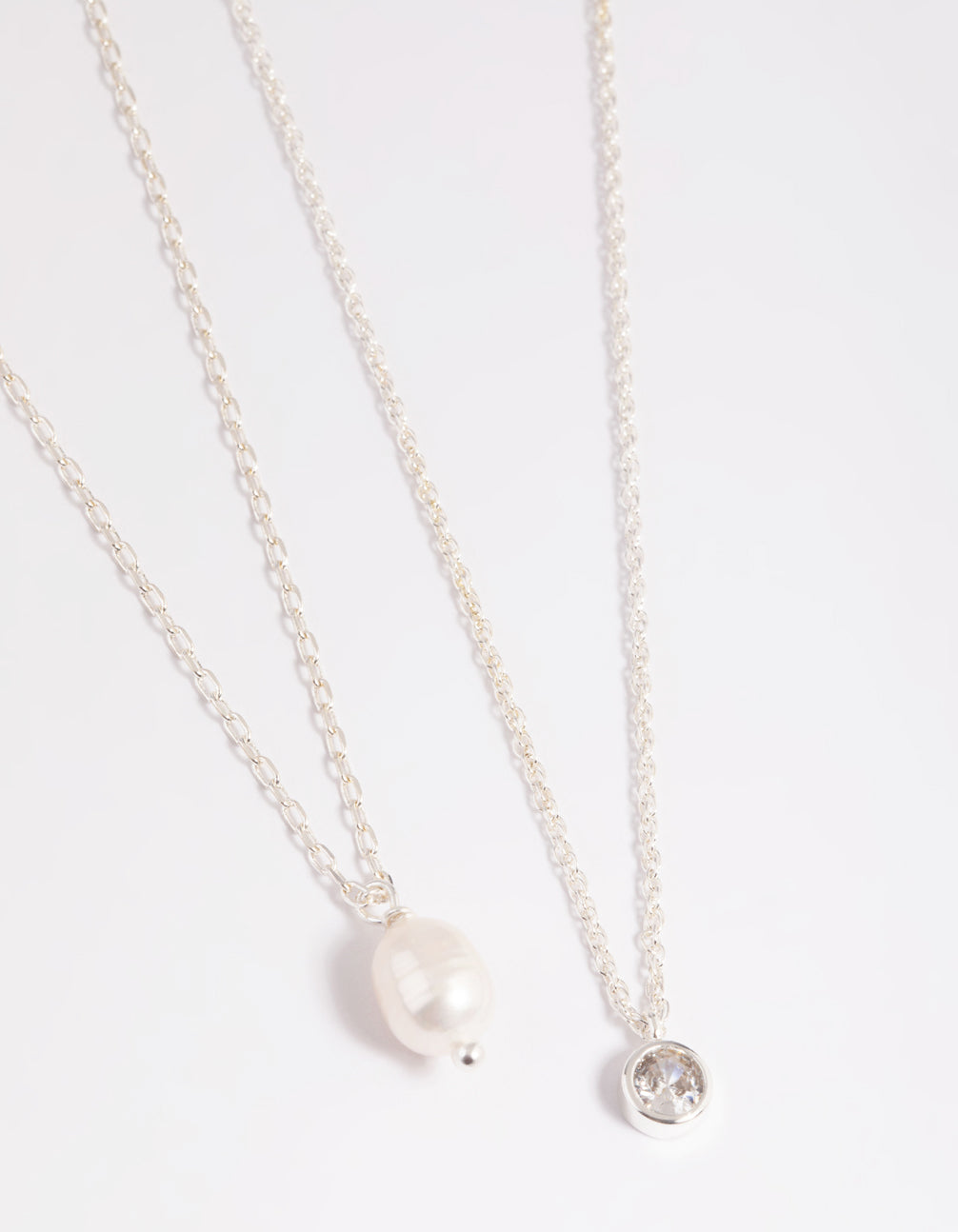Silver Plated Freshwater Pearl & Cubic Zirconia 'Mini Me' Necklace Set
