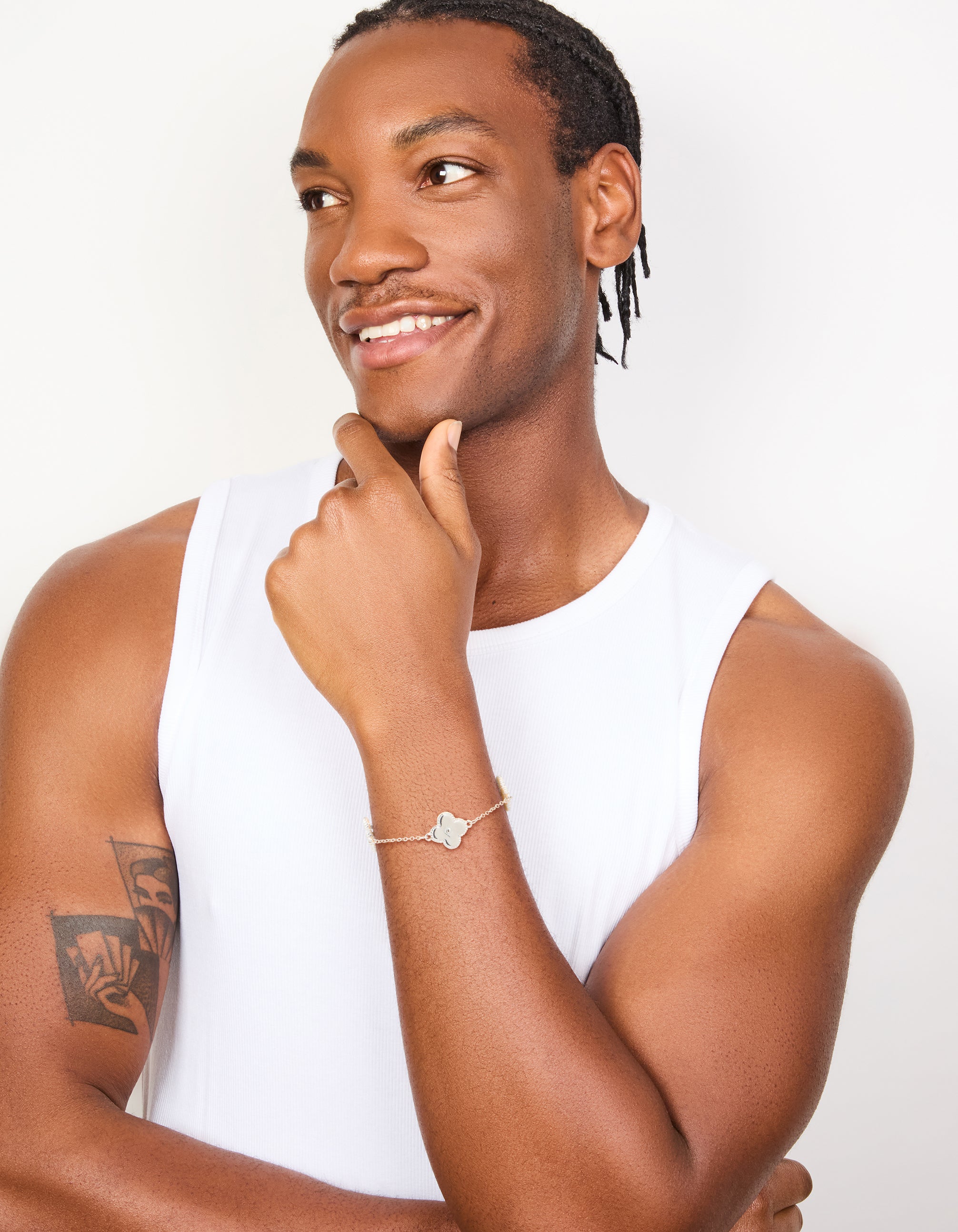 Add a touch of luck and style to your look with this Waterproof Stainless Steel Classic Clover Chain Charm Bracelet. This bracelet features a sleek chain design paired with classic clover charms, symbolising good fortune. Crafted from durable stainless steel, it’s waterproof, meaning it’s sweat, swim, and shower-proof—perfect for everyday wear. Whether you’re heading to the gym, the office, or a night out, this versatile bracelet complements any outfit. Its timeless design pairs effortlessly with casual looks or adds a subtle edge to smarter attire. Built for men who value both style and practicality, this charm bracelet is a must-have accessory for any occasion.