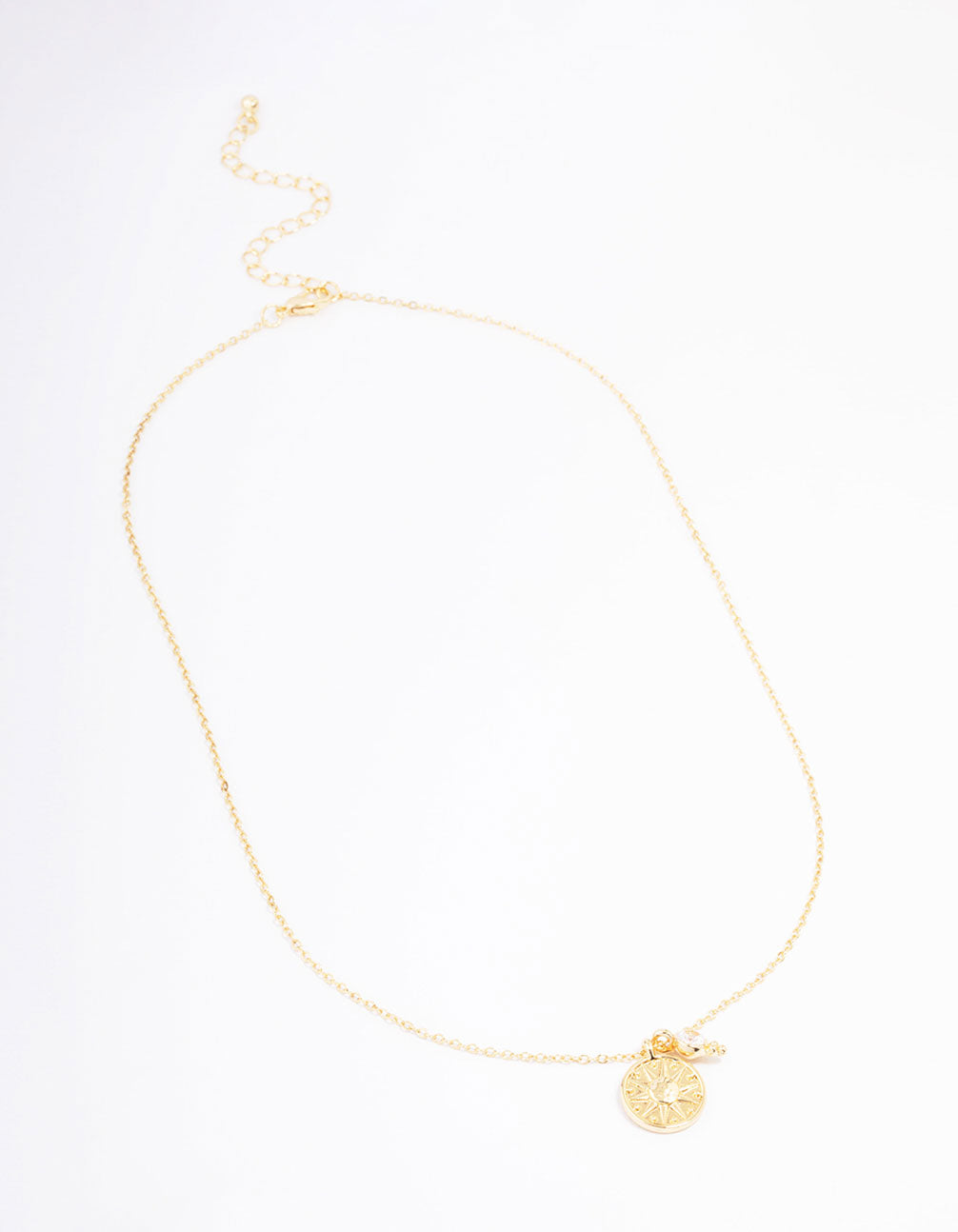 Gold Plated Star Disc & Cubic Zirconia Drop Pendant Necklace