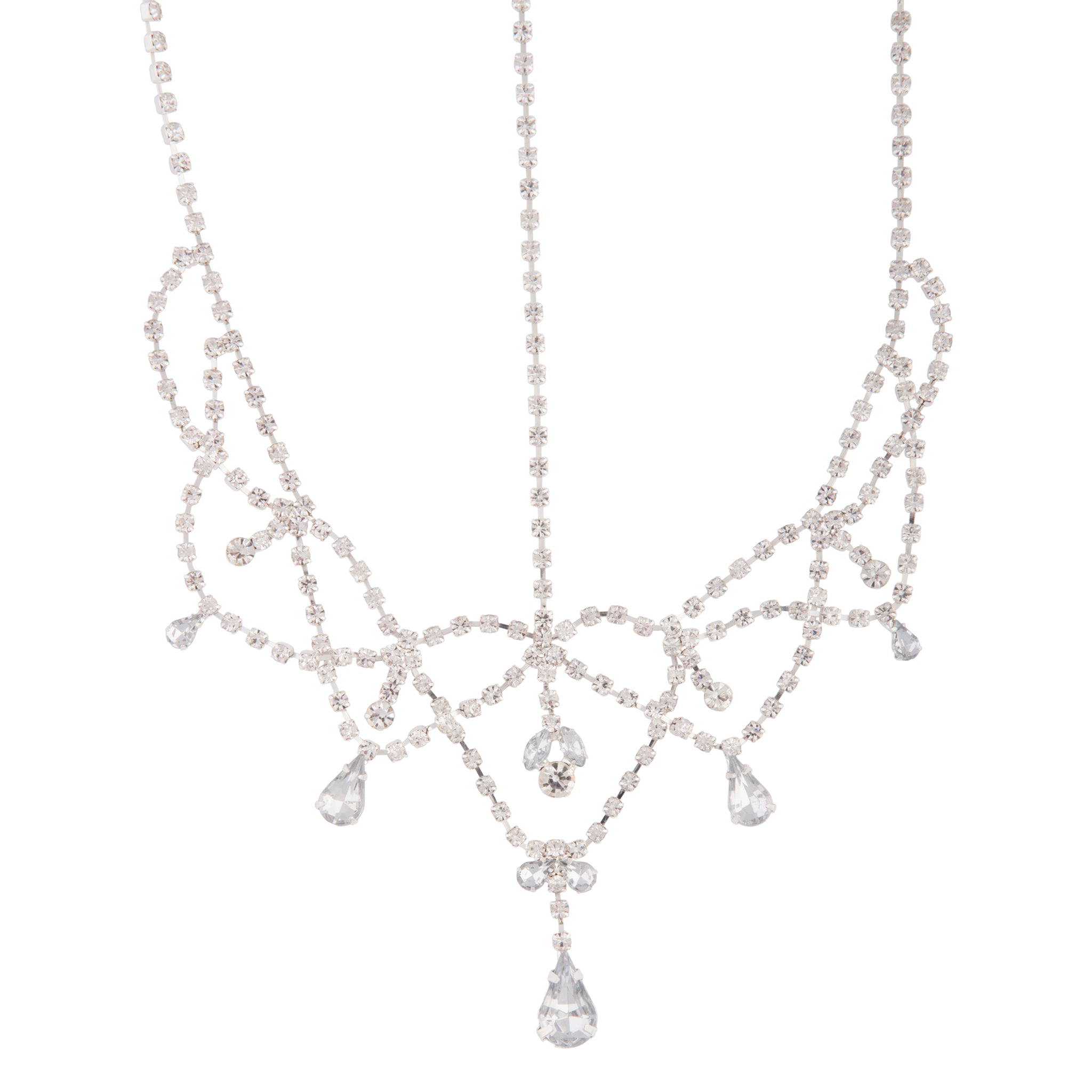 Add a touch of character to your event look with intricate hair accessories. This head chain is designed to drape over the crown of your head. It is silver-toned and features a diamante drop design with an elastic headband at the back for added comfort. Style with delicate silver rings for an on-trend and dreamy aesthetic.