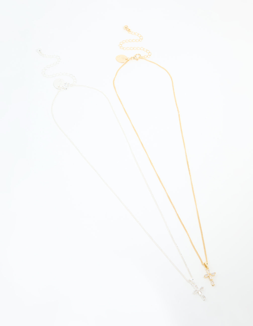 Mixed Metal Cubic Zirconia Cross Pendant Necklace Pack