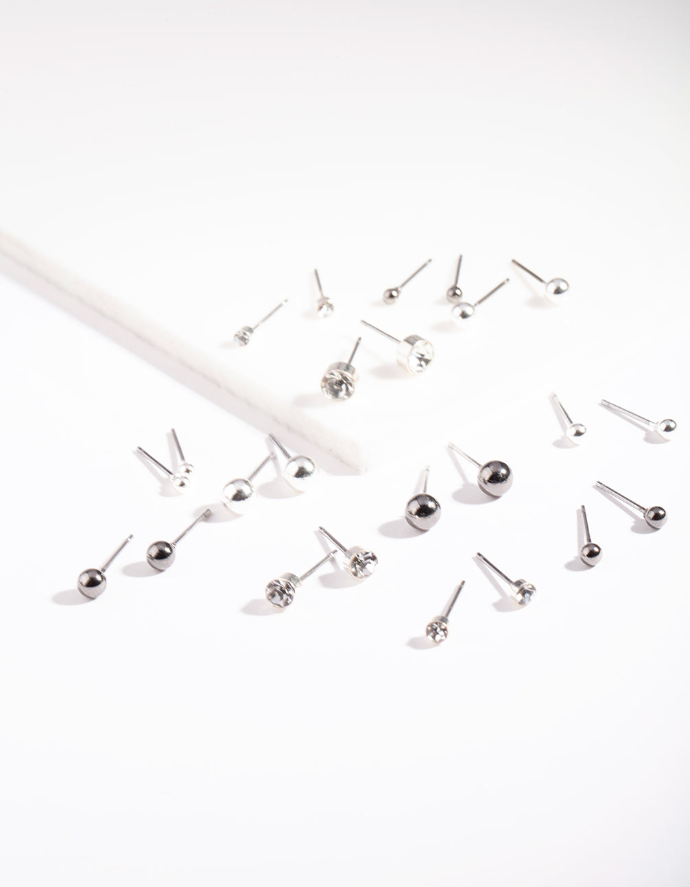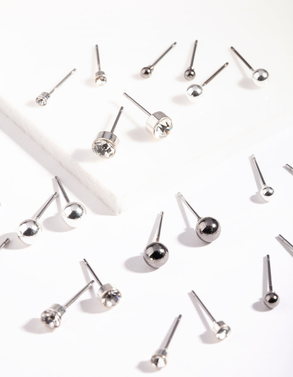 Silver Diamante Tiny Graduated Black Earrings 12-Pack