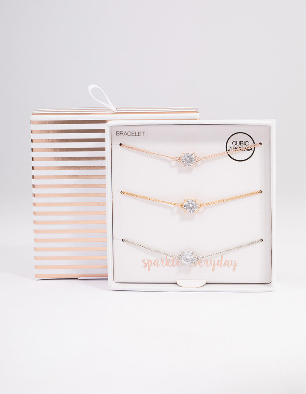 Mixed Metal Cubic Zirconia Bracelet Set Mixed Metal Cubic Zirconia Bracelet Set Mixed Metal Cubic Zirconia Bracelet Set