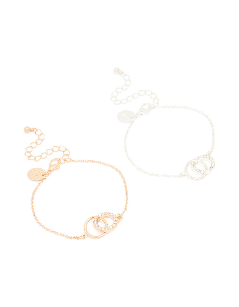 Mixed Metals Diamante Open Circle Bracelets 2-Pack