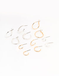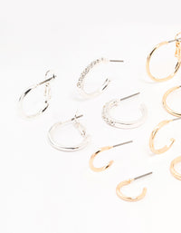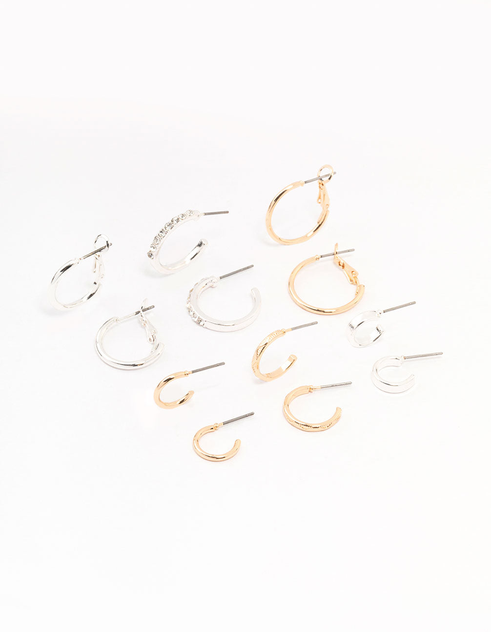 Mixed Metals Diamante Sleeper Earrings 6-Pack