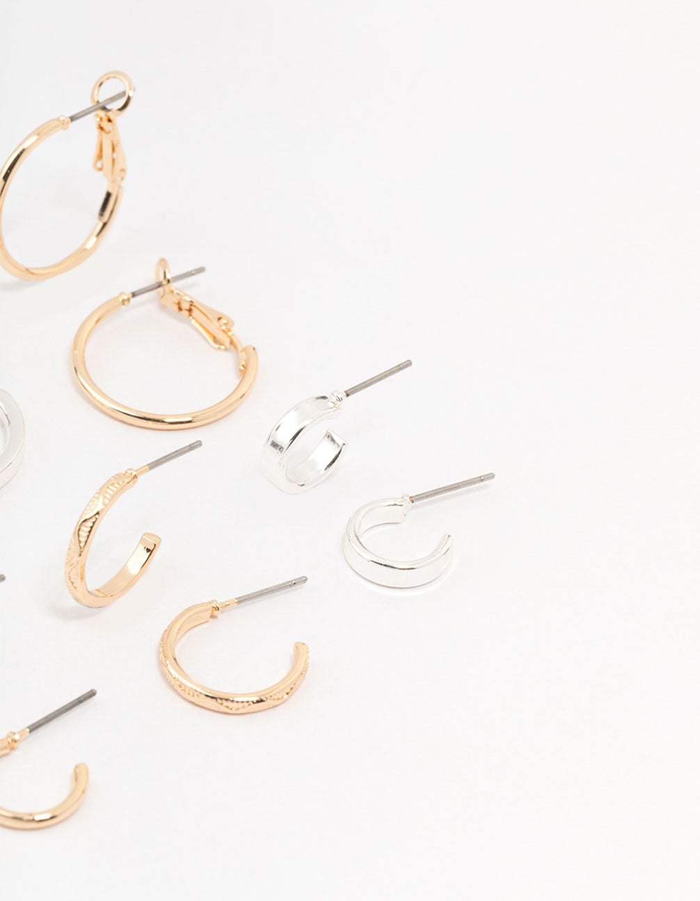 Get ready to embrace trendiness and comfort all in one fabulous set! This collection features six mixed metal sleeper earrings, each with a touch of sparkly diamante detailing for that extra glam. Ideal for those who love having earring options.