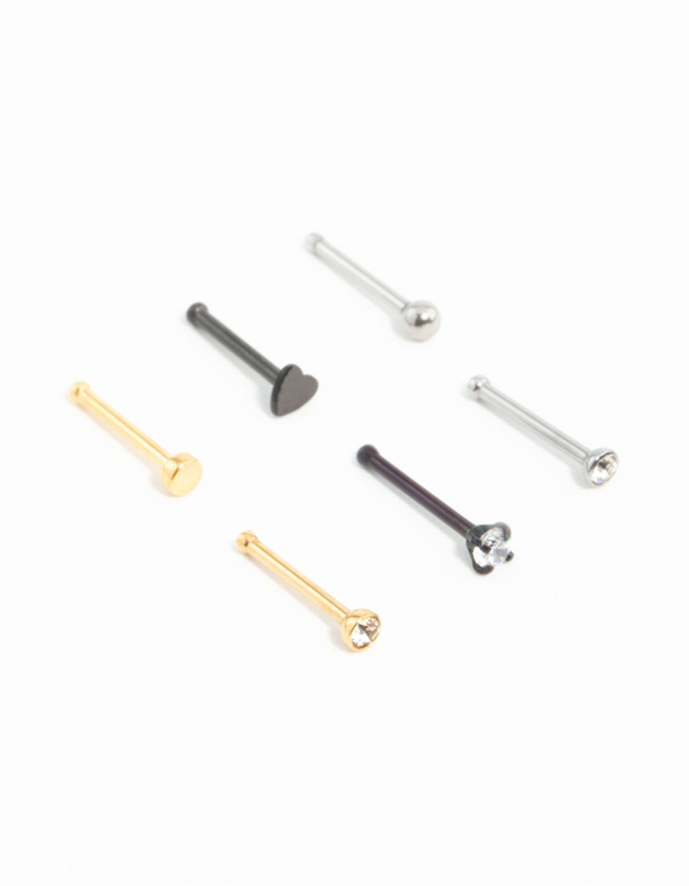 Mixed Metals Heart & Diamante Nose Studs 6-Pack Mixed Metals Heart & Diamante Nose Studs 6-Pack Mixed Metals Heart & Diamante Nose Studs 6-Pack