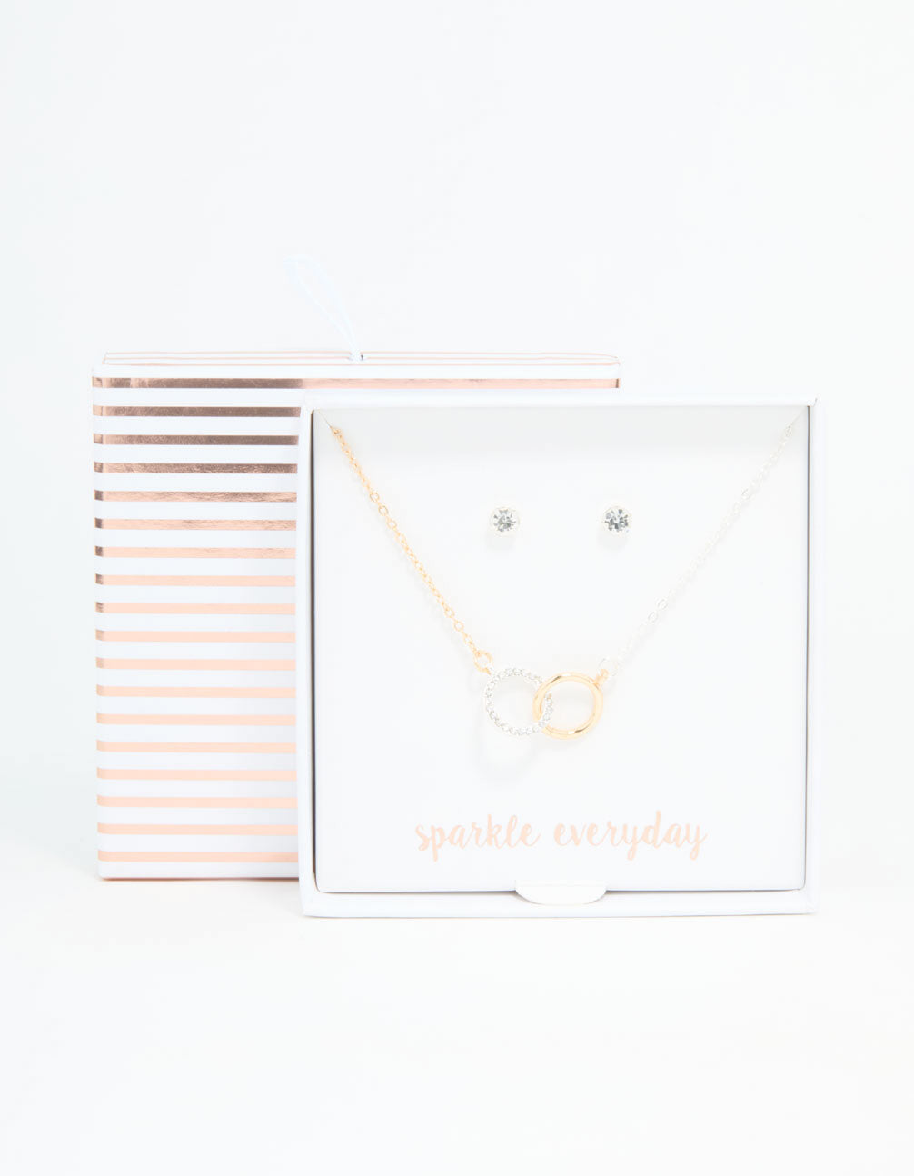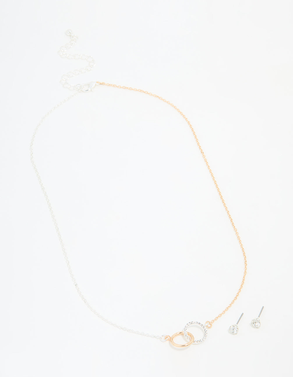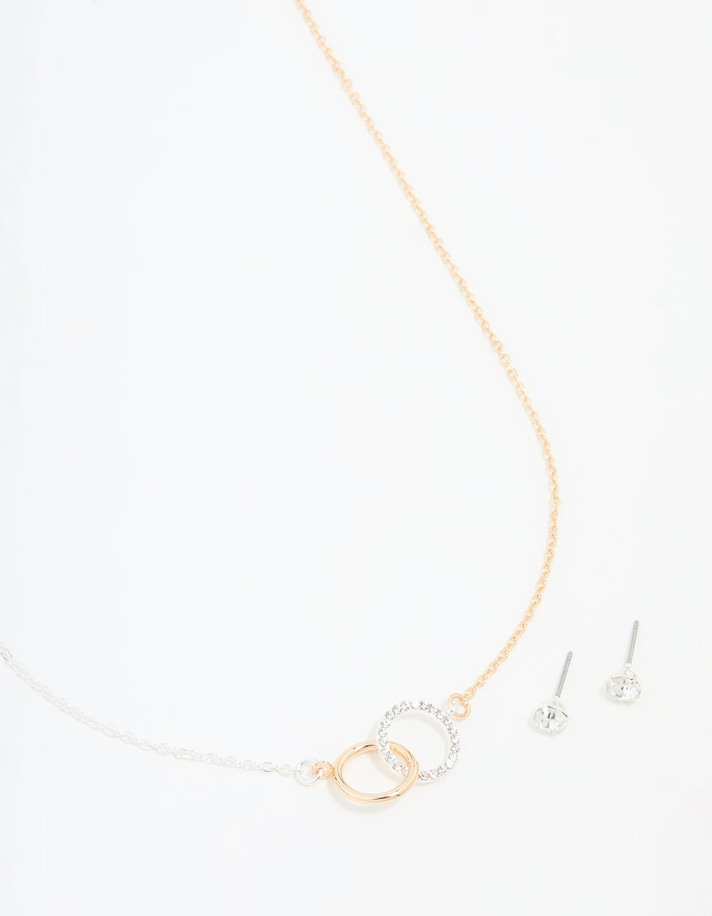 Mixed Metals Linked Circle Necklace & Stud Earrings Set