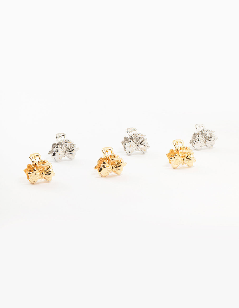 Up your look with these Mixed Metals Mini Bow Clips, blending metallic accents for a playful touch in any hairstyle. With a sleek claw clip design, they secure your locks stylishly, offering an effortlessly glamorous vibe.