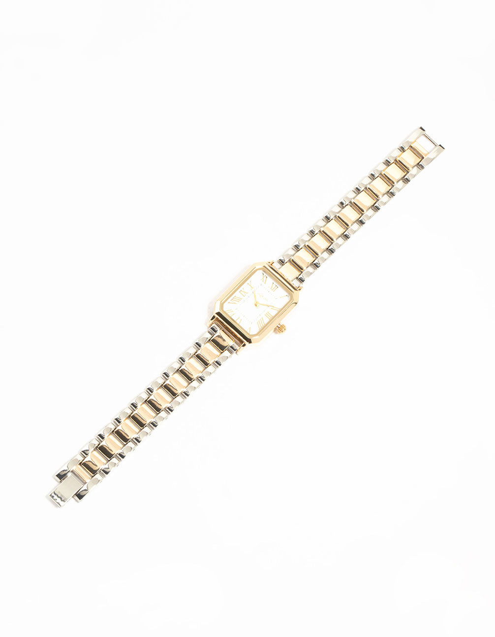 Upgrade your style with this chic mixed metals watch. Featuring gold and silver tones and vintage Roman numerals, it's perfect for telling time with flair.
