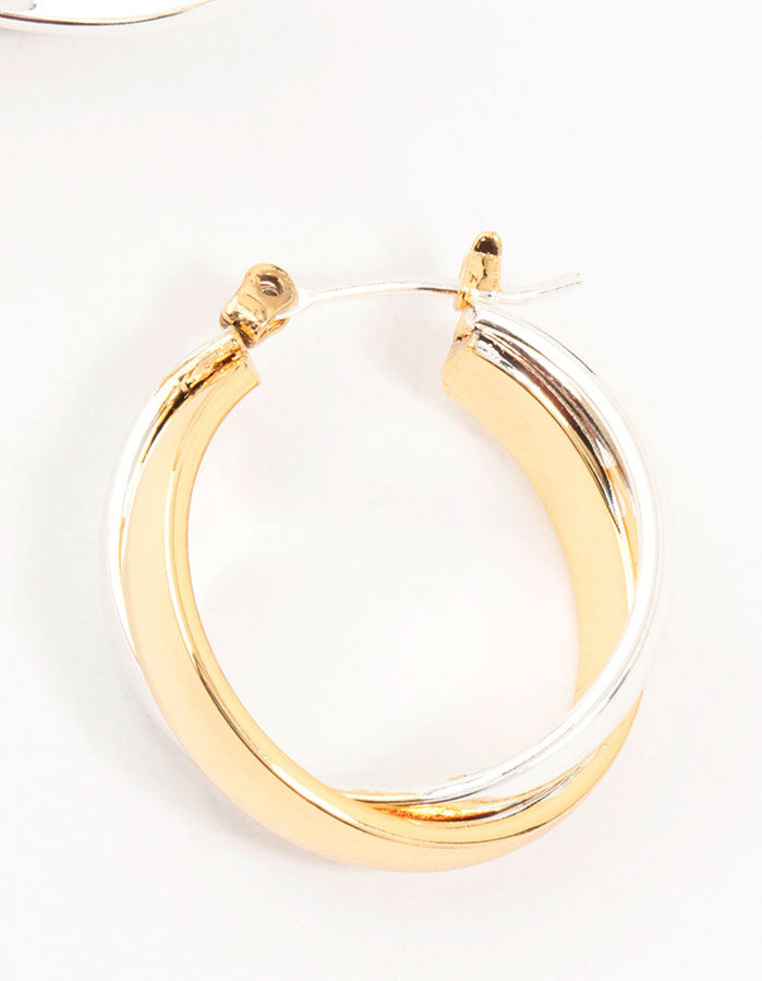 Embrace trending mixed metals tones with these dual toned silver and gold plated hoop earrings. The dual toned colouring creates an effortlessly cool contrasted look and the twisted design adds a bit of edge to your ear game.