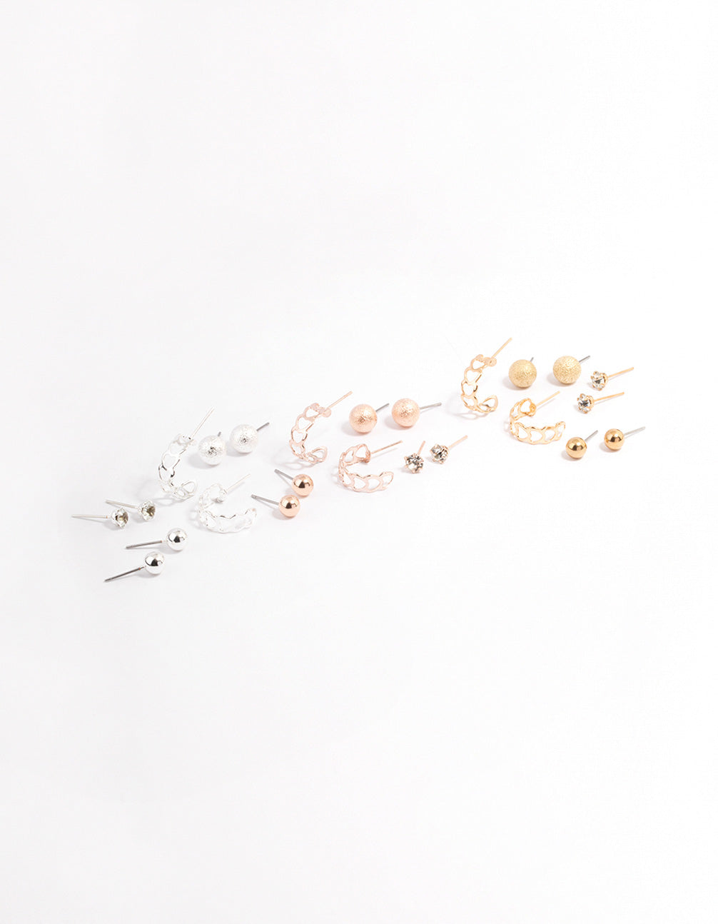 - This ear stack contains twelve individual, mixed metal earrings and features heart and sunblast motifs for an on-trend finish.