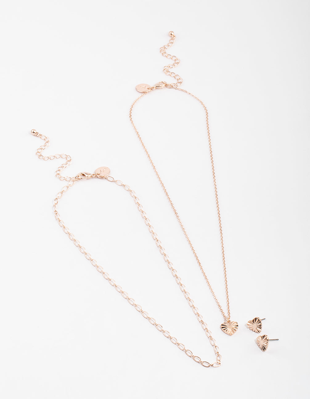 Rose Gold Heart Rays Layered Necklace & Earrings Set Rose Gold Heart Rays Layered Necklace & Earrings Set Rose Gold Heart Rays Layered Necklace & Earrings Set