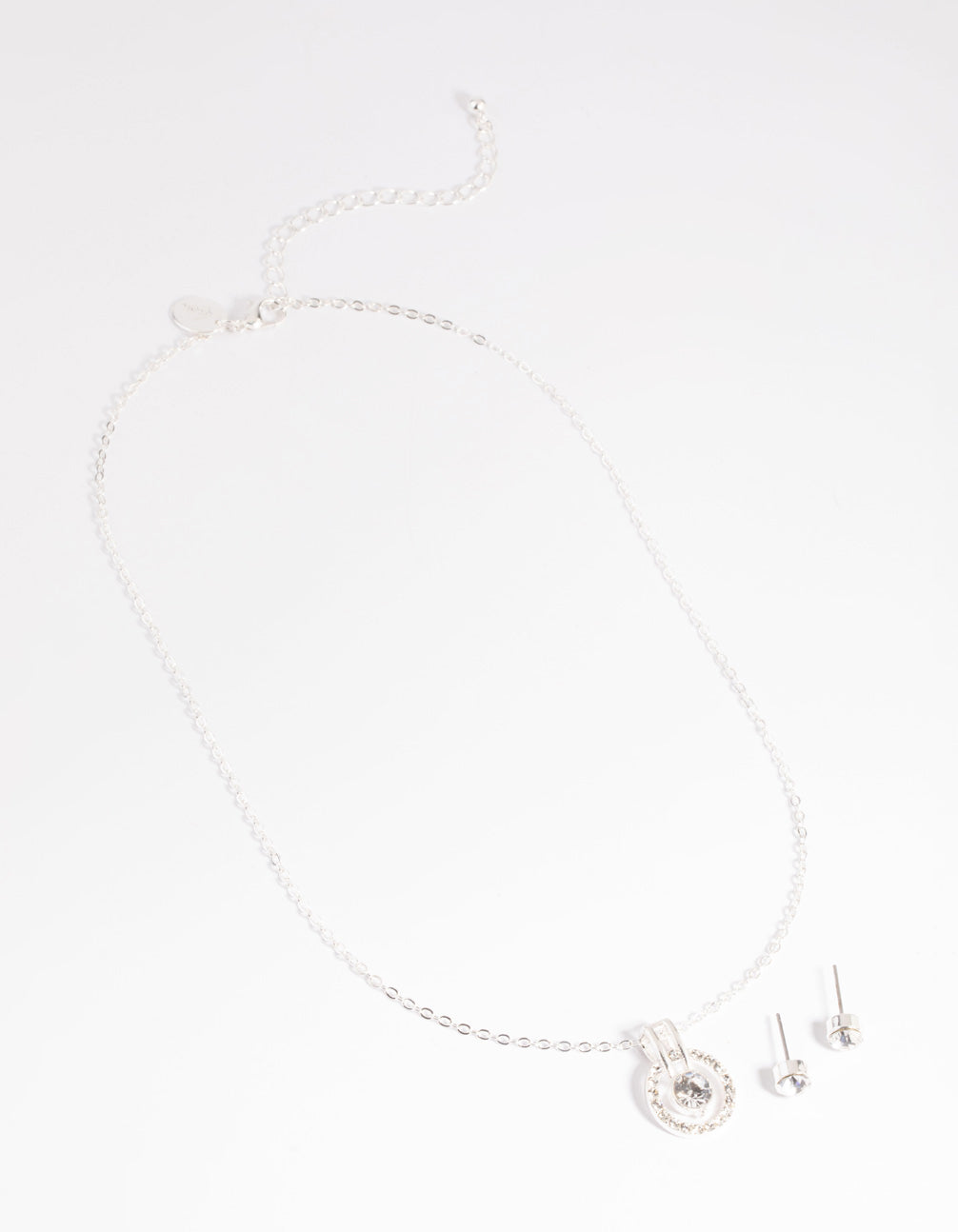 Silver Diamante Round Necklace & Earrings Set