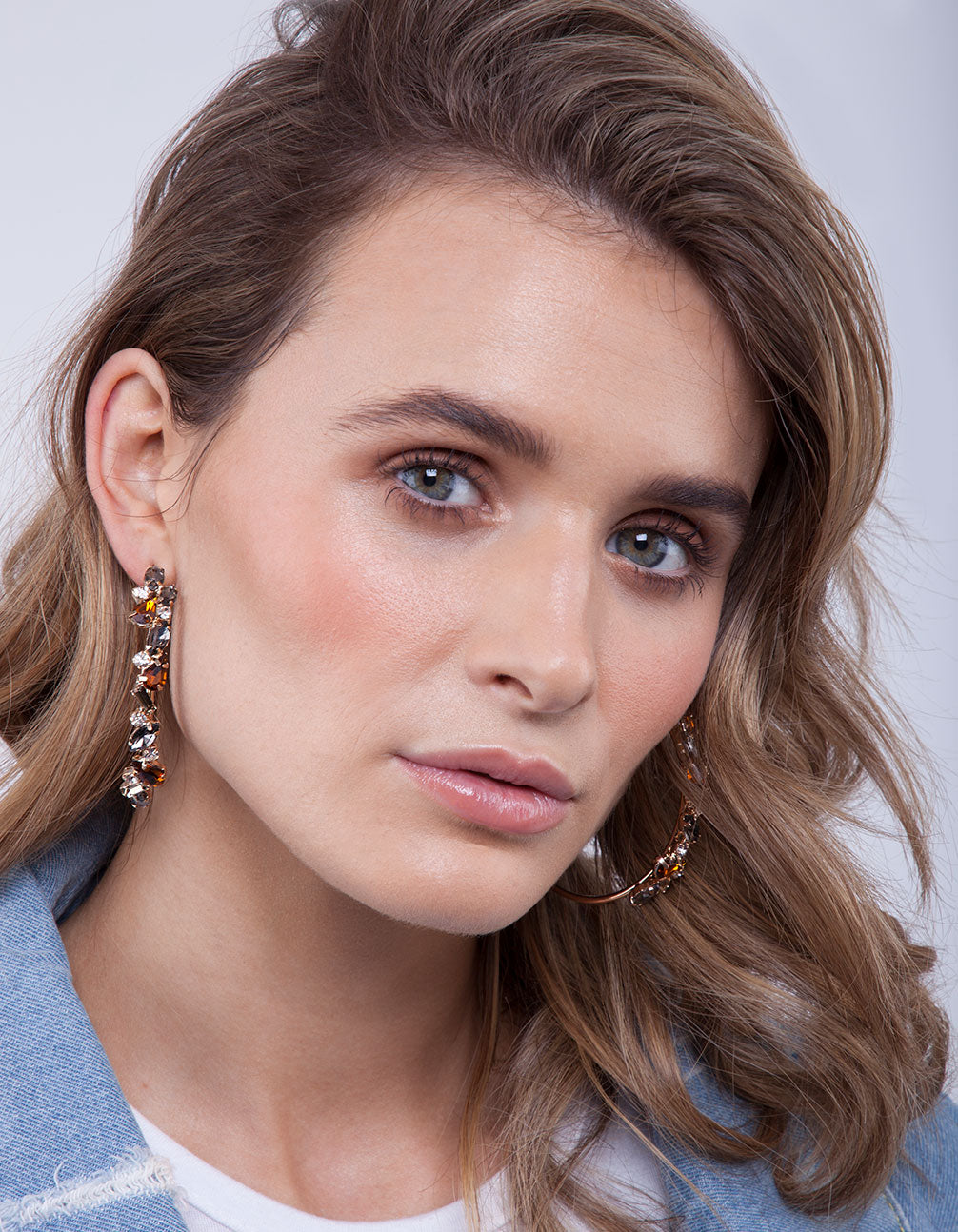 A fun pair of fashion earrings are an easy way to spice up your daily ensembles! These hoop earrings boast a cluster of neutral toned diamantes. Style with gold-toned layered necklaces and a scattered ring set for an on-trend look.