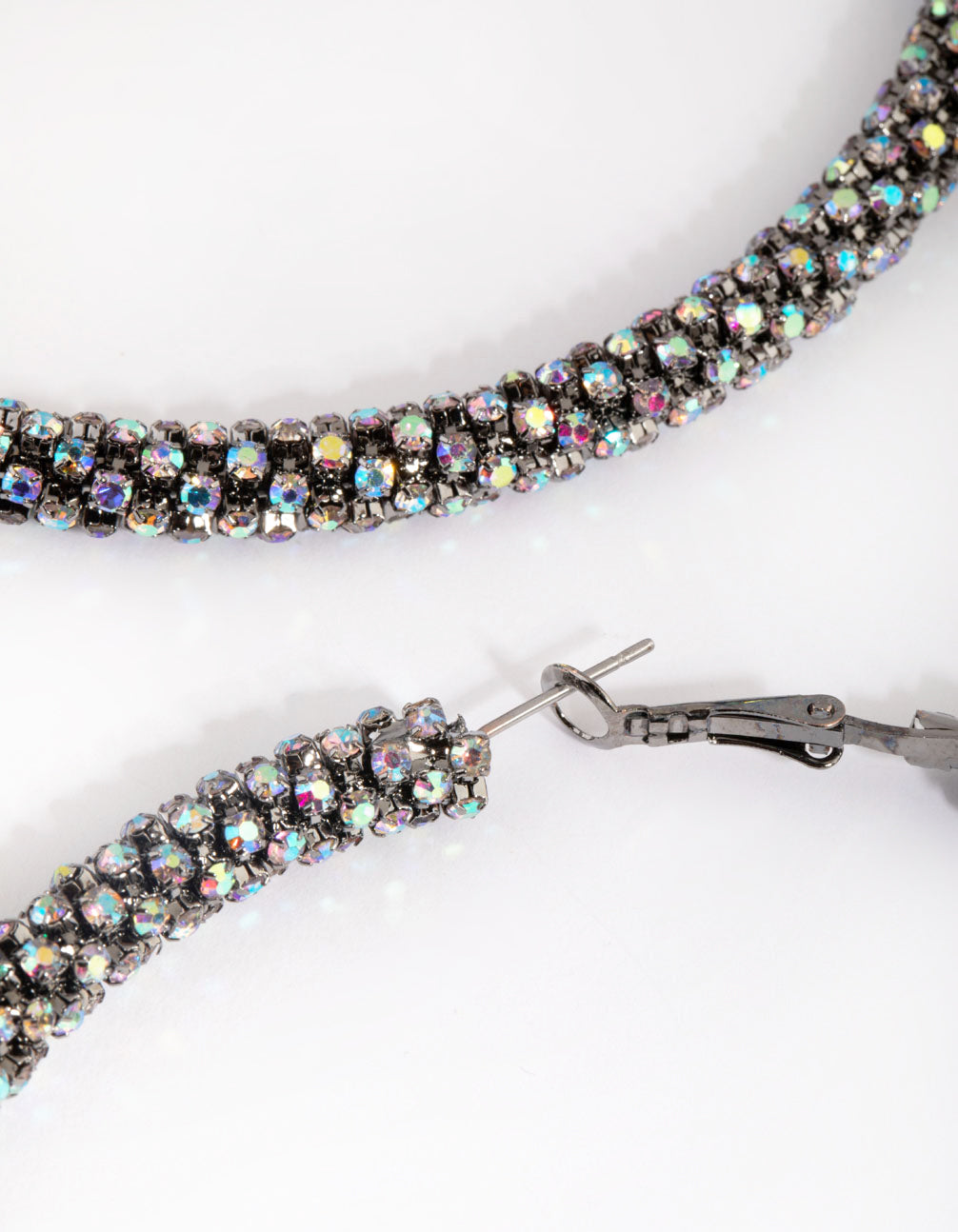 Gunmetal Diamante Hoop Earrings