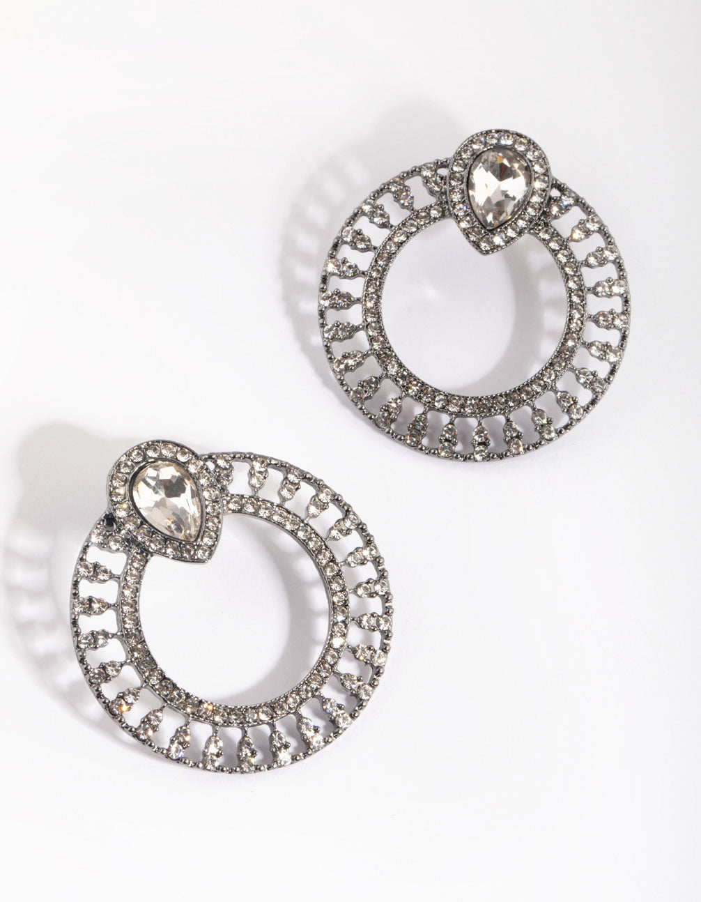 Sparkle the night away with glamorous earrings with a dramatic edge! Featuring a dark-hued setting with an eye-catching diamante studded design, these gorgeous earrings will take your evening look to the next level! Wear them with a pop of colour to embrace contrast, or pair them with darker hues for a mysterious look.