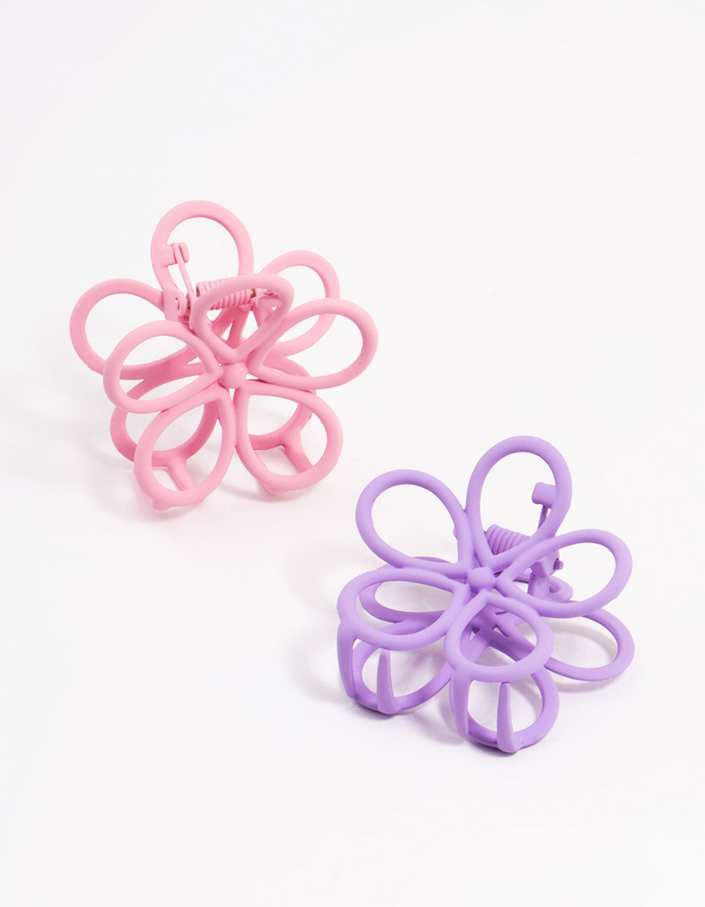 • This hair clip pack includes two acrylic floral claw. Style them with a pair of floral huggie earrings for a cohesive look.