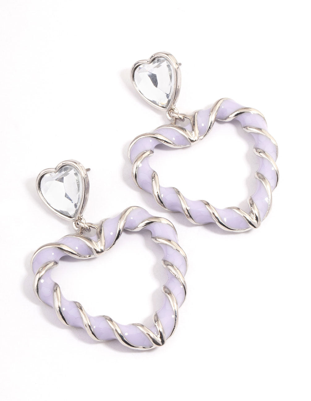 • Style these purple, twisted heart motif drop earrings with matching accessories from our Heart Trend Edit for more.