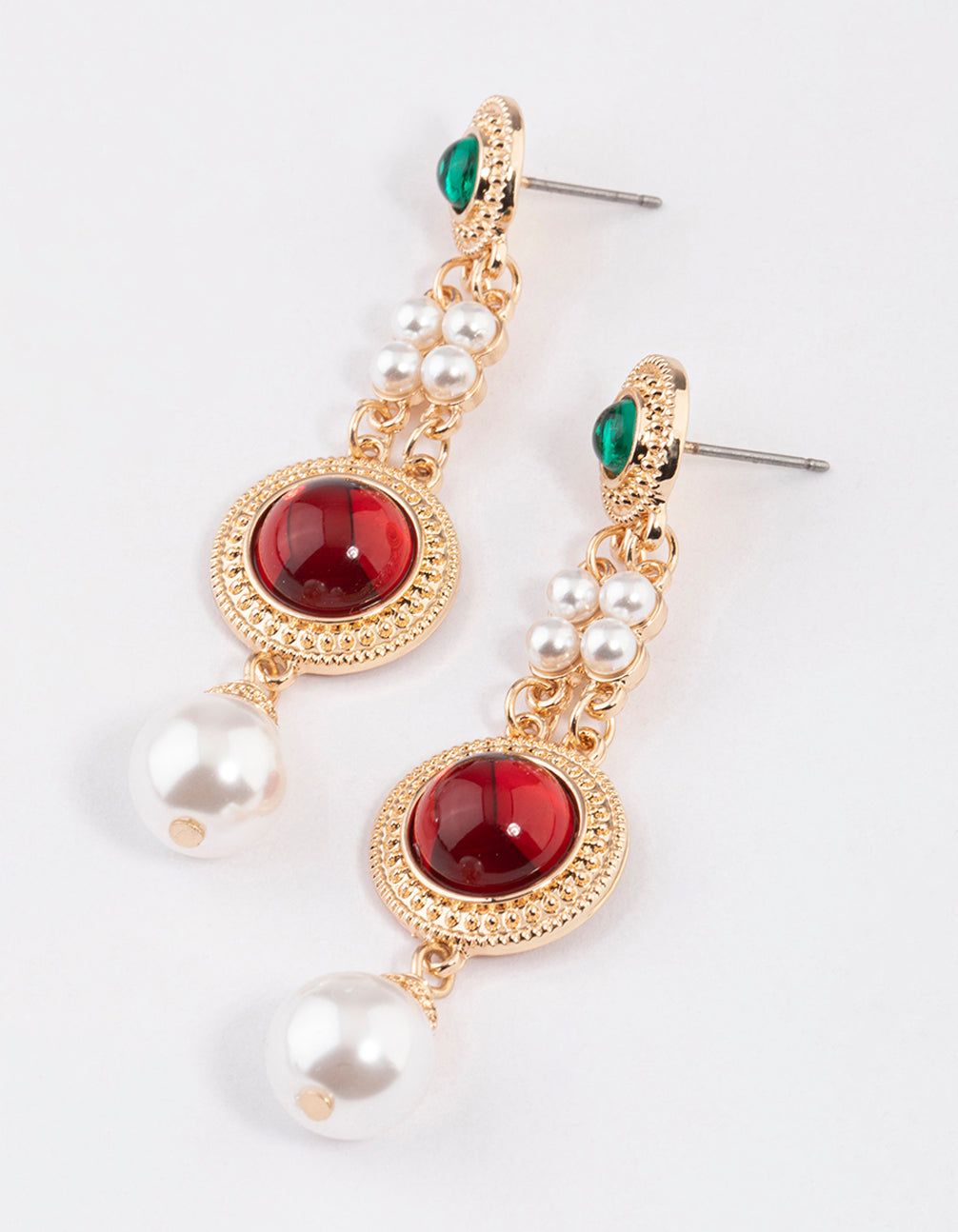 Gold Stone Pearly Drop Earrings Gold Stone Pearly Drop Earrings Gold Stone Pearly Drop Earrings