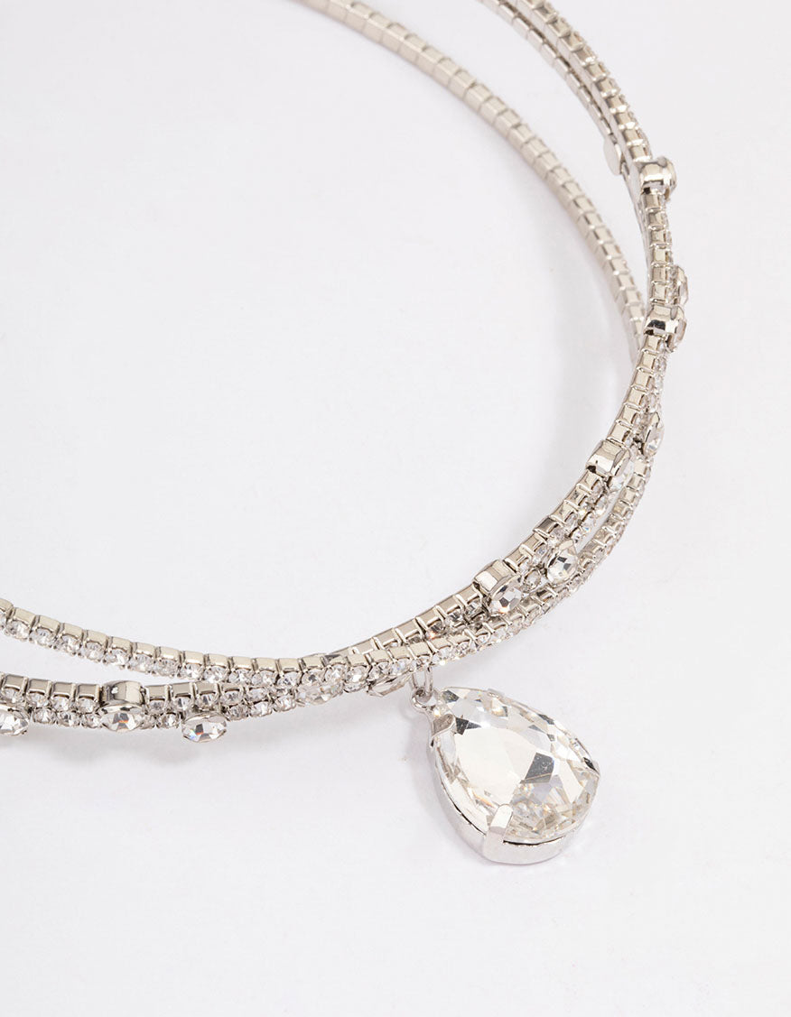 - This silver-toned choker necklace features an interlaced design of mixed diamantes for a glamorous finish.