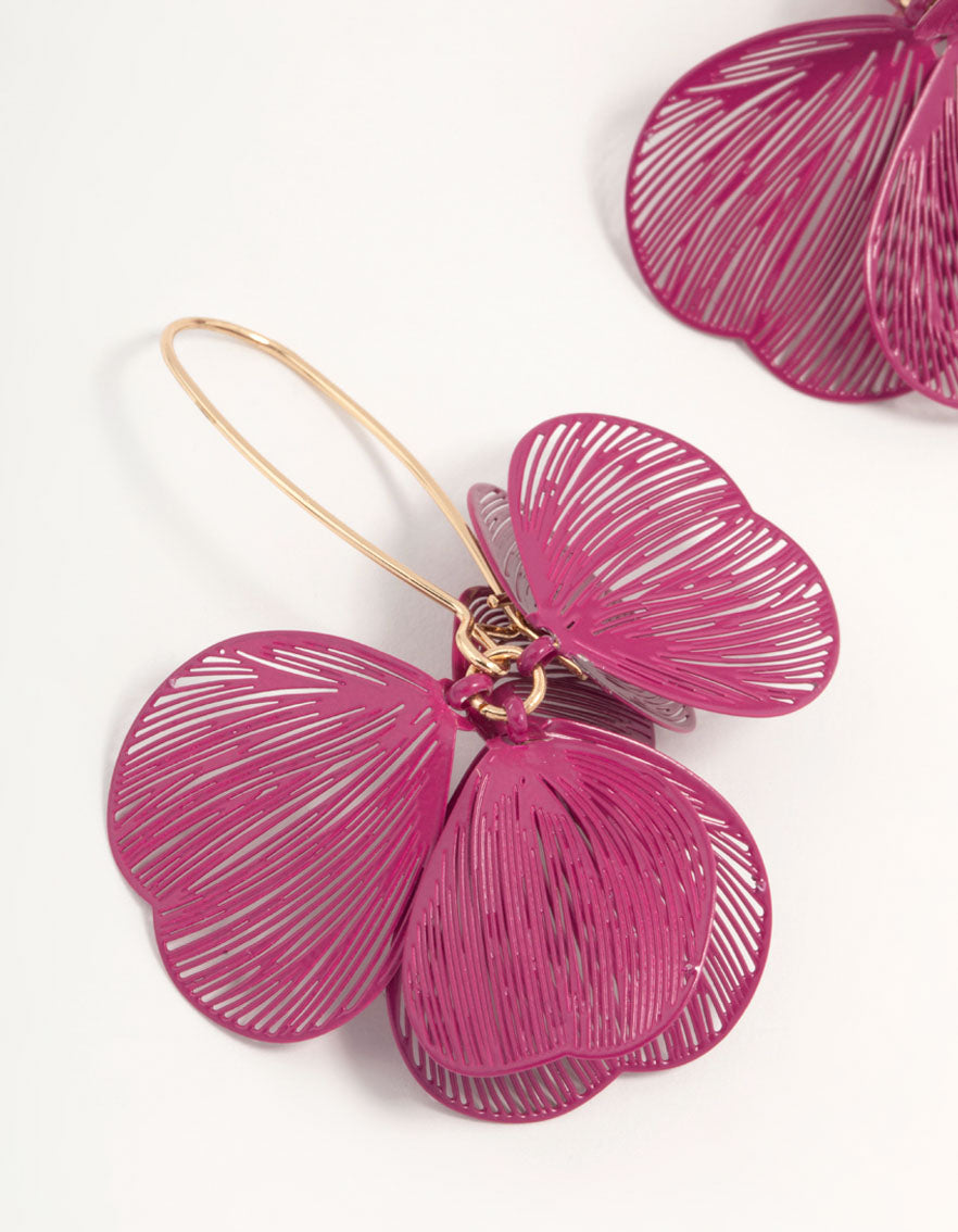 Pink Coated Metal Lasercut Petal Drop Earrings