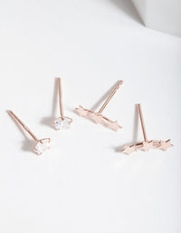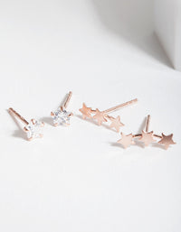 This rose gold plated sterling silver stud earring pack features a variety of stud designs such as a cubic zirconia star stud and a star cluster crawler stud.