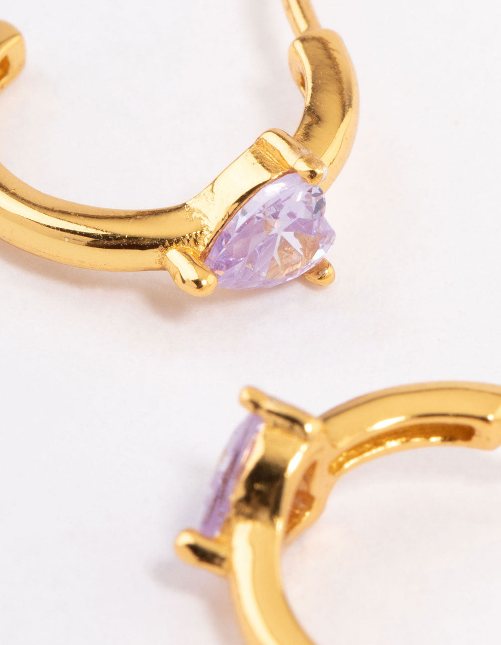 Gold Plated Sterling Silver Amethyst Heart Hoop Earrings