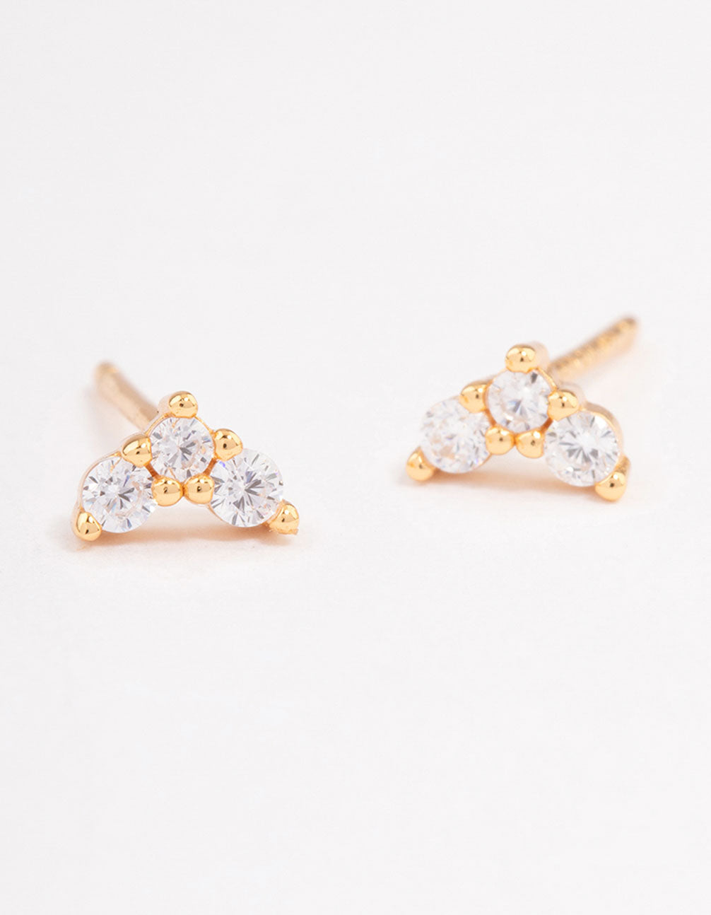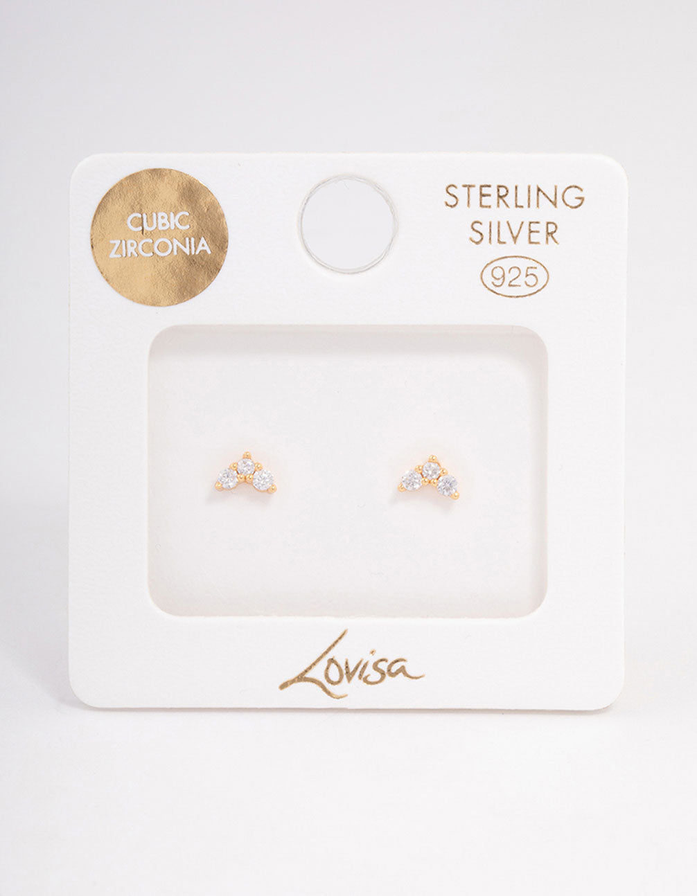 Gold Plated Sterling Silver Cubic Zirconia Classic Trio Earrings