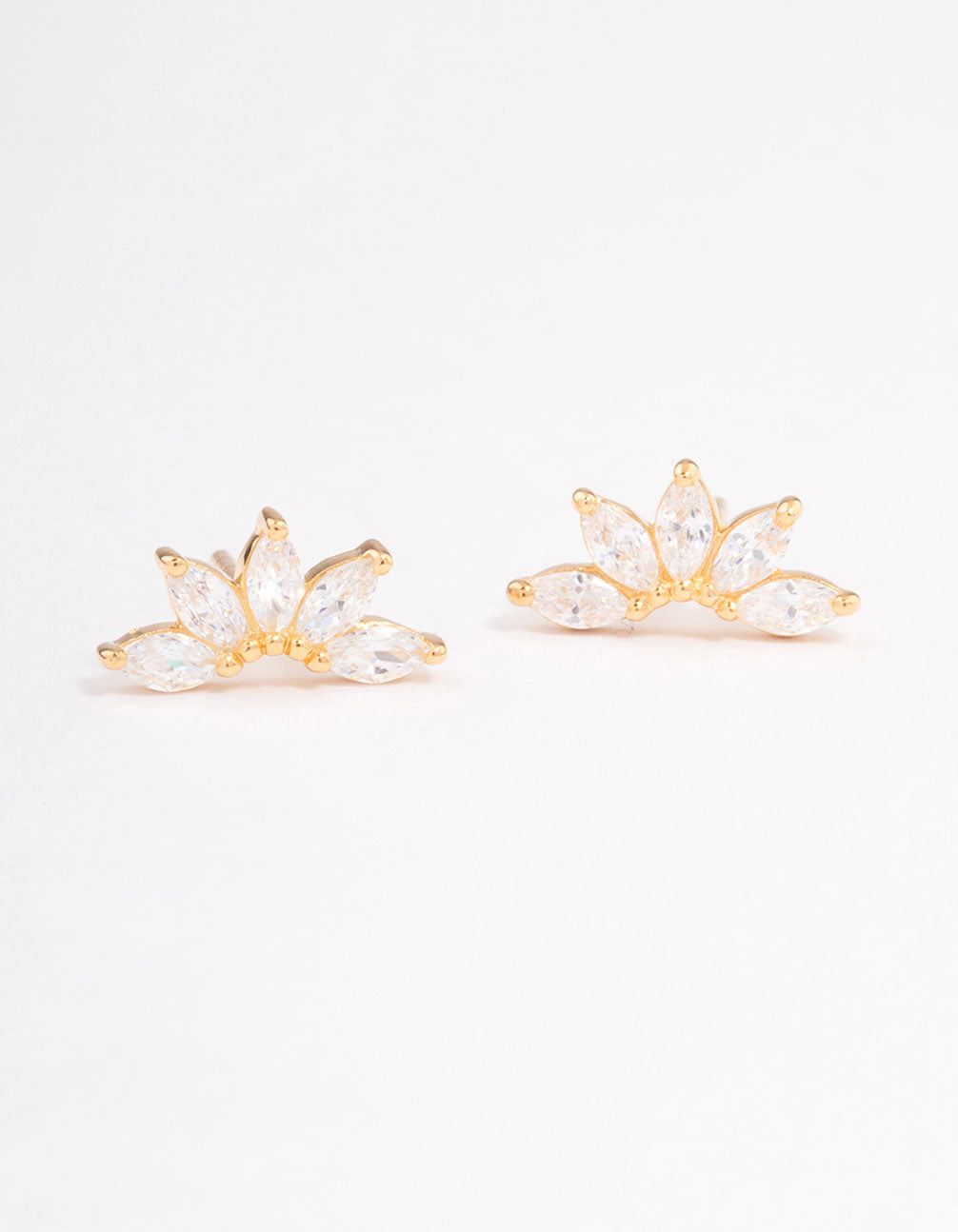 Gold Plated Sterling Silver Cubic Zirconia Fan Stud Earrings