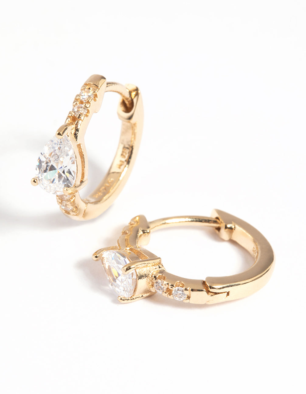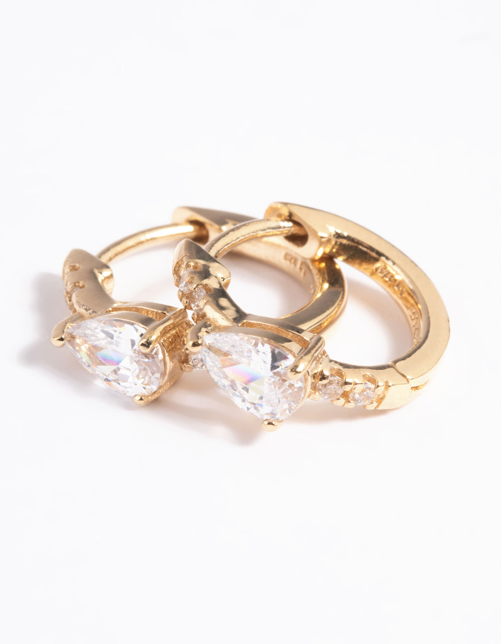 Gold Plated Sterling Silver Cubic Zirconia Marquise Huggie Hoop Earrings