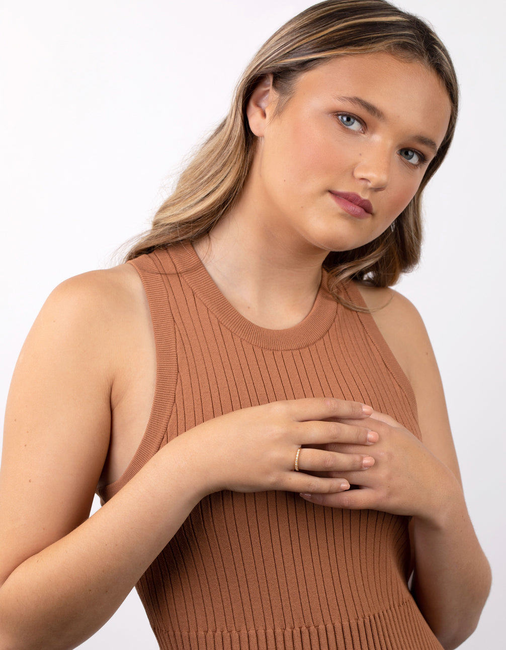 This gold plated sterling silver ring boasts a pave diamante row design. It is the perfect addition to any simple outfit.