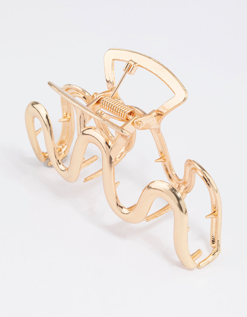 Elevate your everyday hair-do with our collection of uber-cute hair clips! This '90s-inspired claw clip features a molten gold, wavy body - perfect for pairing with your other gold essentials!