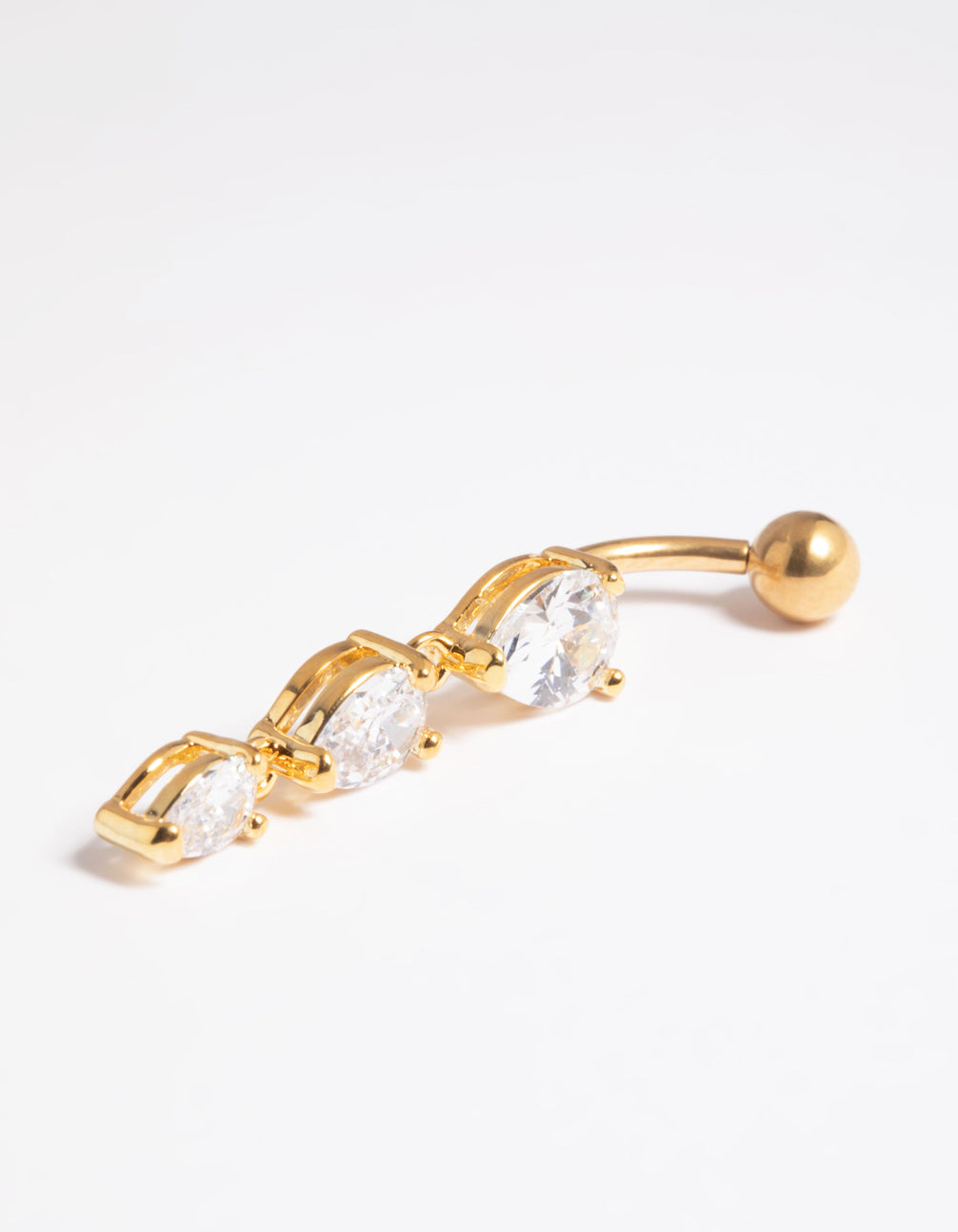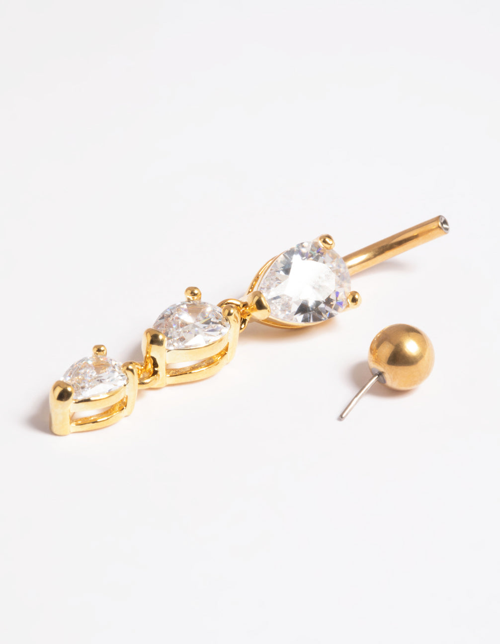 Gold Plated Titanium Threadless Crystal Pear Belly Bar