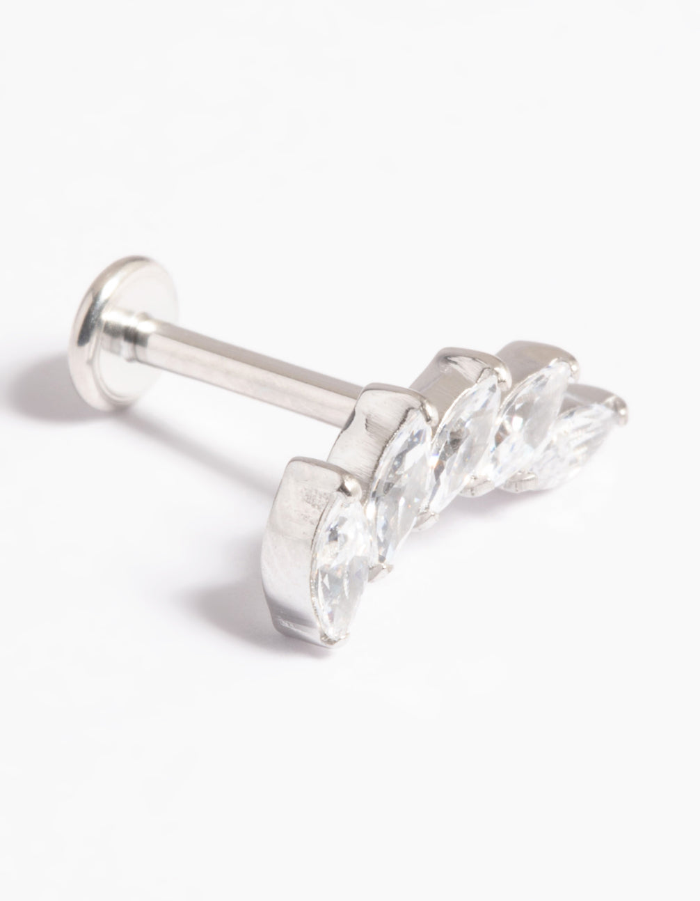 Platinum Plated Titanium Threadless Crystal Curve Flat Back