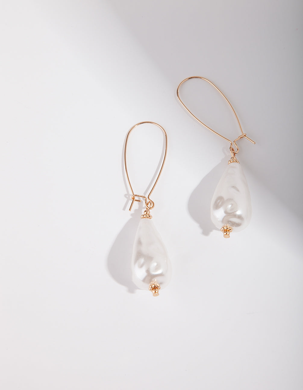 Gold Teardrop Pearl Hoop Earrings