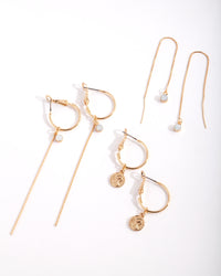 Gold Plated Charm Hoop Earring Pack