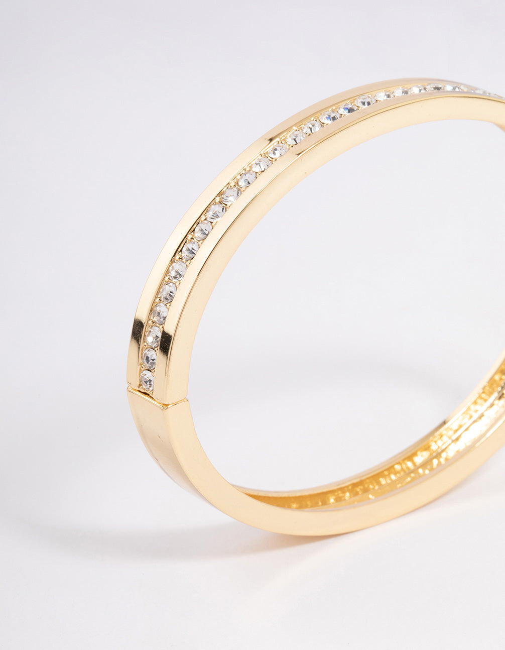 Style this Gold Plated Classic Diamante Hinge Bangle with a simple pendant necklace for a modern look.