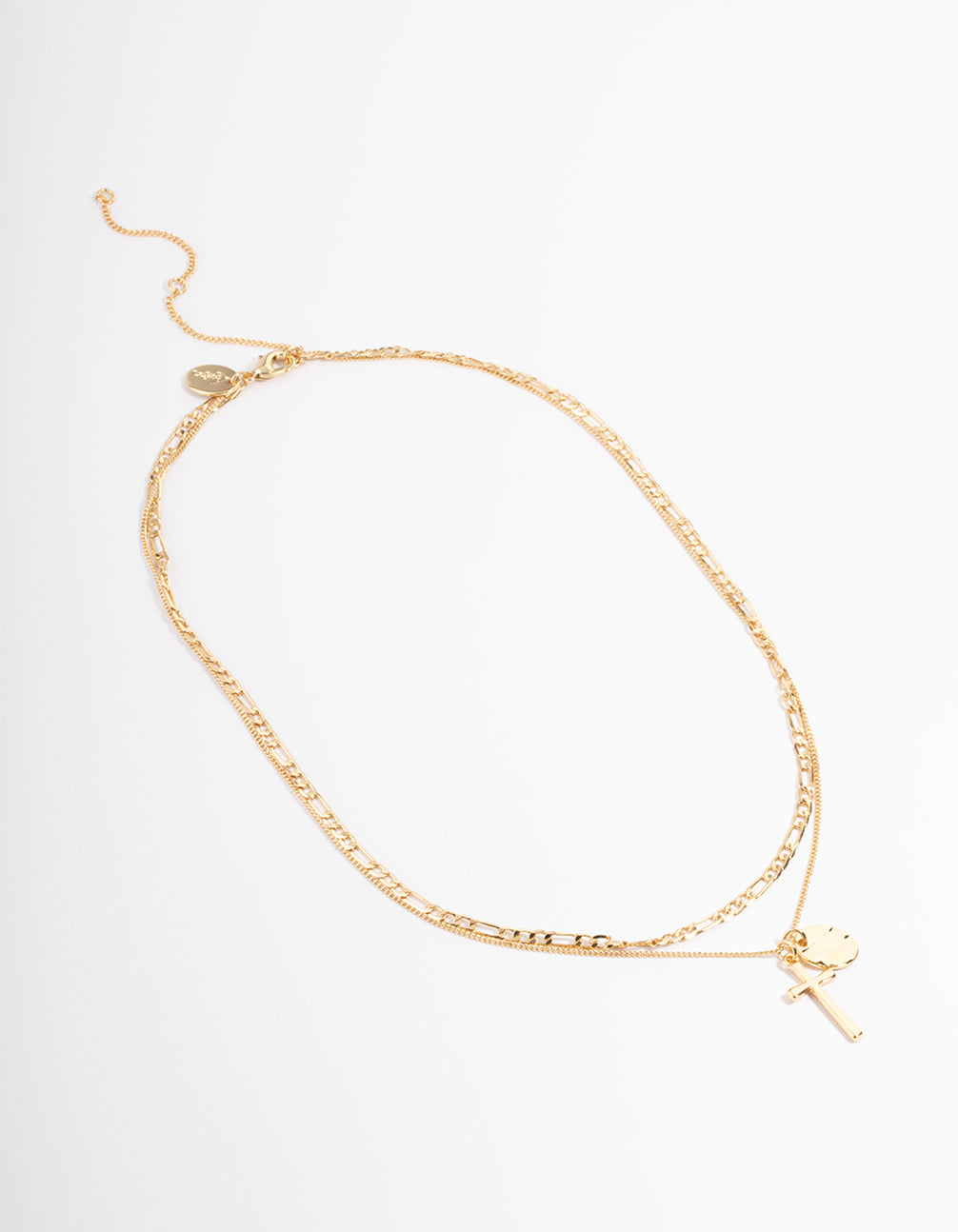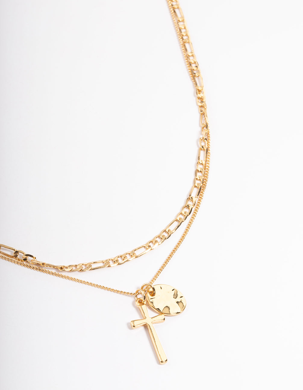 Gold Plated Cross & Figaro Layered Necklace