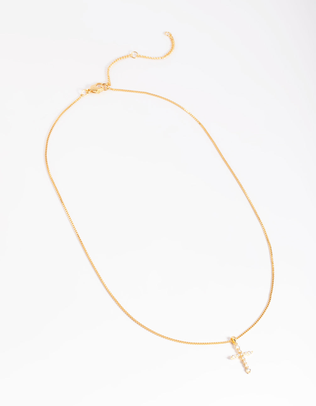 Gold Plated Cubic Zirconia Cross Chain Necklace