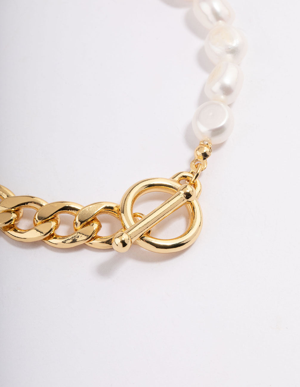 Gold Plated Freshwater Pearl Half Chain FOB Bracelet