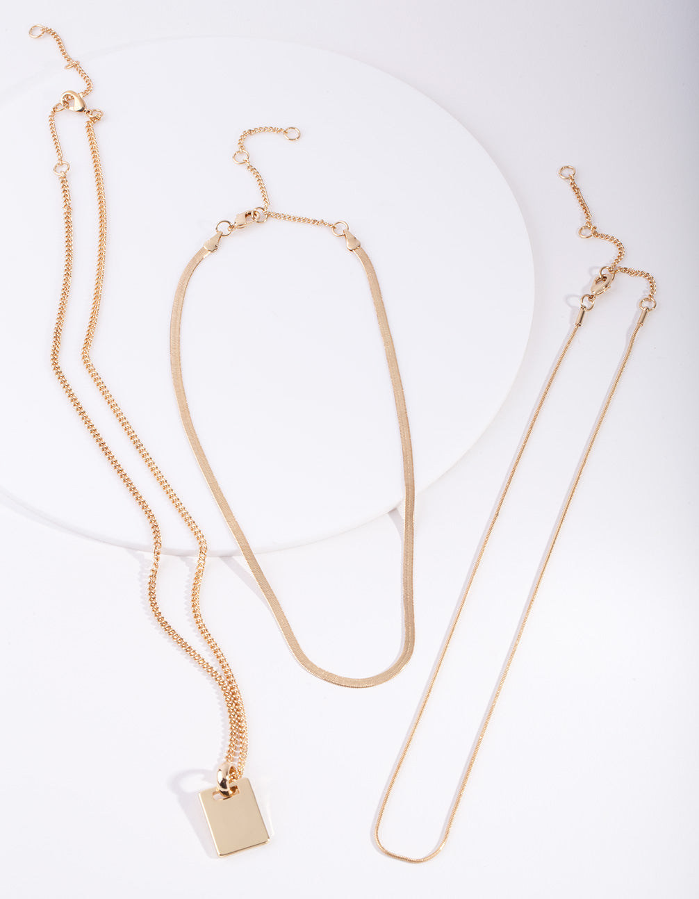 A collection of precious pieces made in the finest quality metal platings. This necklace pack features a trio of fine chain designs with a gold plated finish.