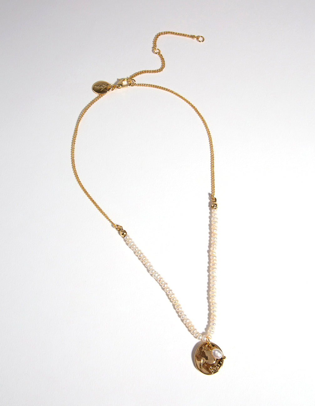 We love a pearl moment! This short gold-plated chain necklace features small pearl beads and a gold and pearl pendant. Your new everyday silver and pearl necklace!