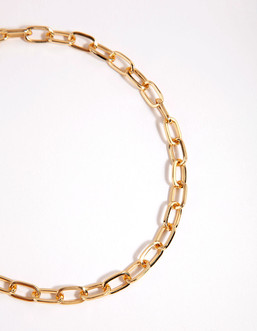 Treat yourself to something luxe with fabulous gold-plated jewellery. This choker necklace features a small rectangle link chain. Pair this with your favourite evening outfit for a considered ensemble.