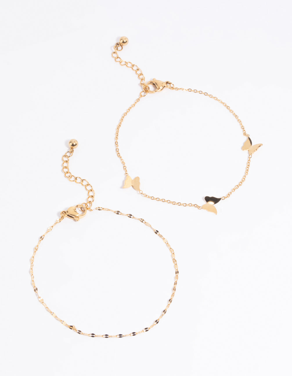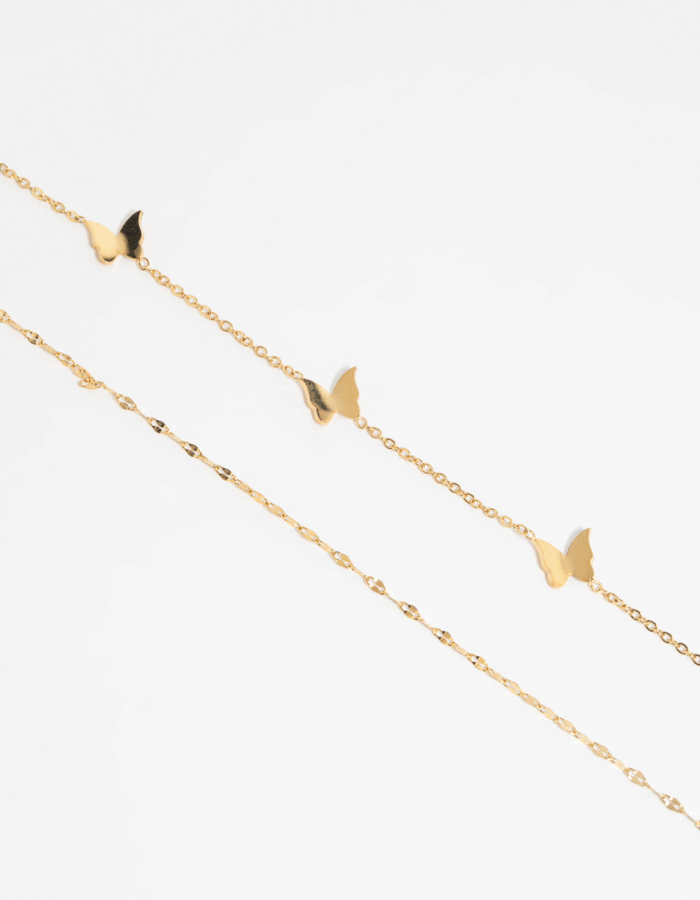 Invest in quality jewellery staples from the Lovisa Waterproof Jewellery Collection! This Waterproof Gold Plated Stainless Steel Butterfly Chain Bracelet Set is crafted from stainless steel, making it highly resistant and durable for everyday wear.