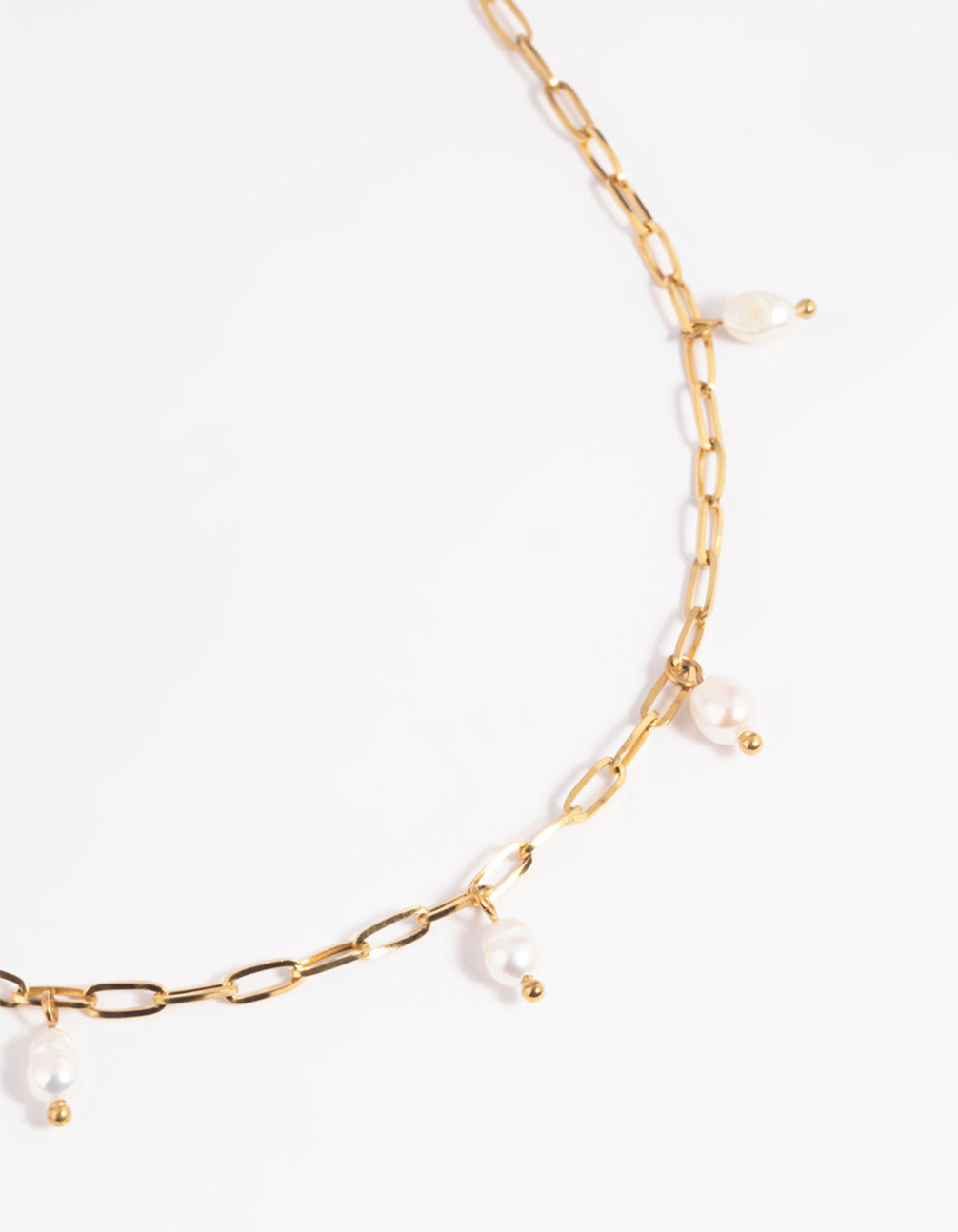 Gold Plated Surgical Steel Freshwater Pearl Chain Necklace