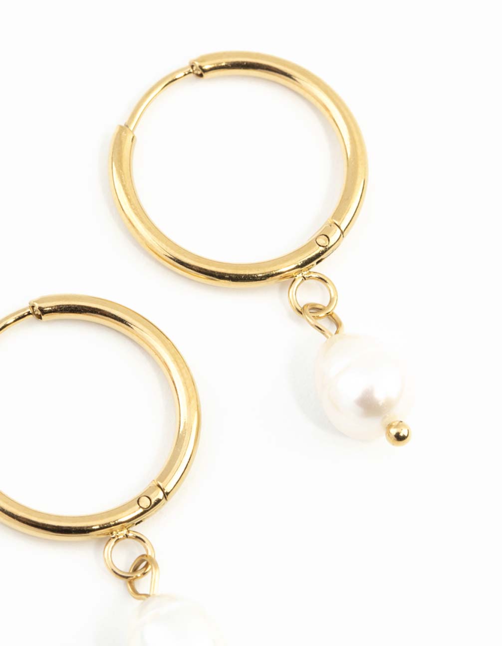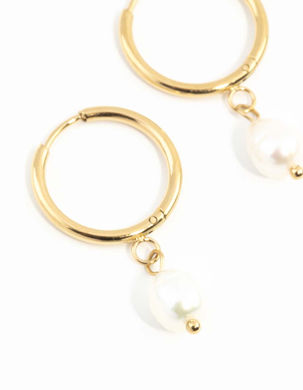 Waterproof Gold Plated Stainless Steel Freshwater Pearl Thin Huggie Hoop Earrings