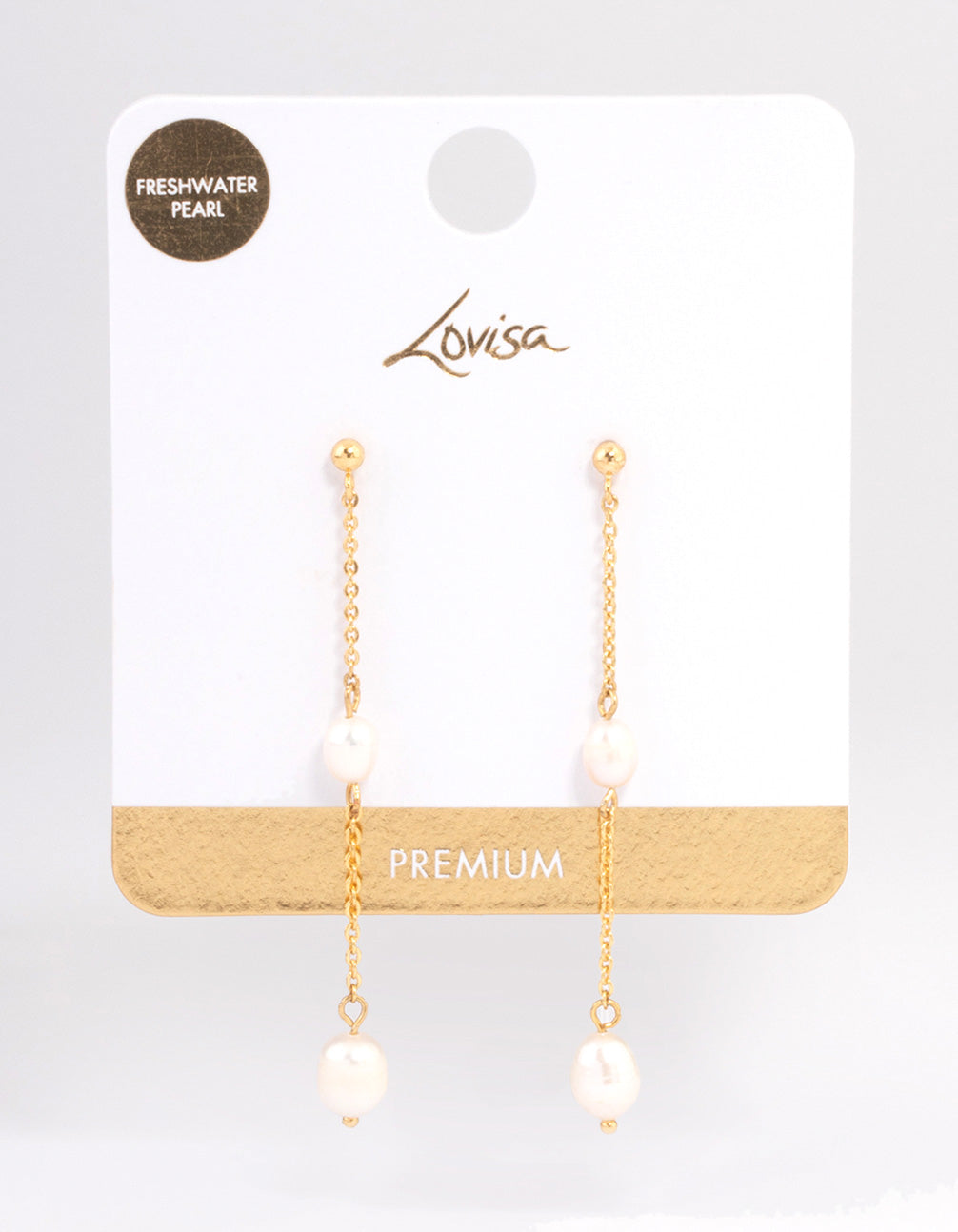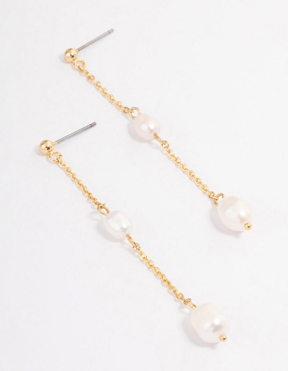 Gold Plated Long Chain Freshwater Pearl Stud Earrings