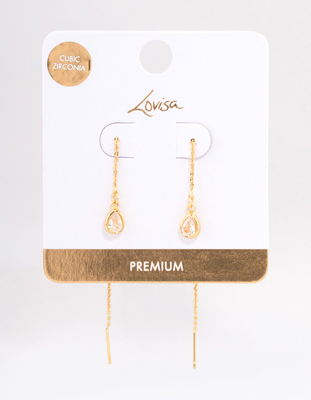 Gold Plated Thread Through Cubic Zirconia Earrings