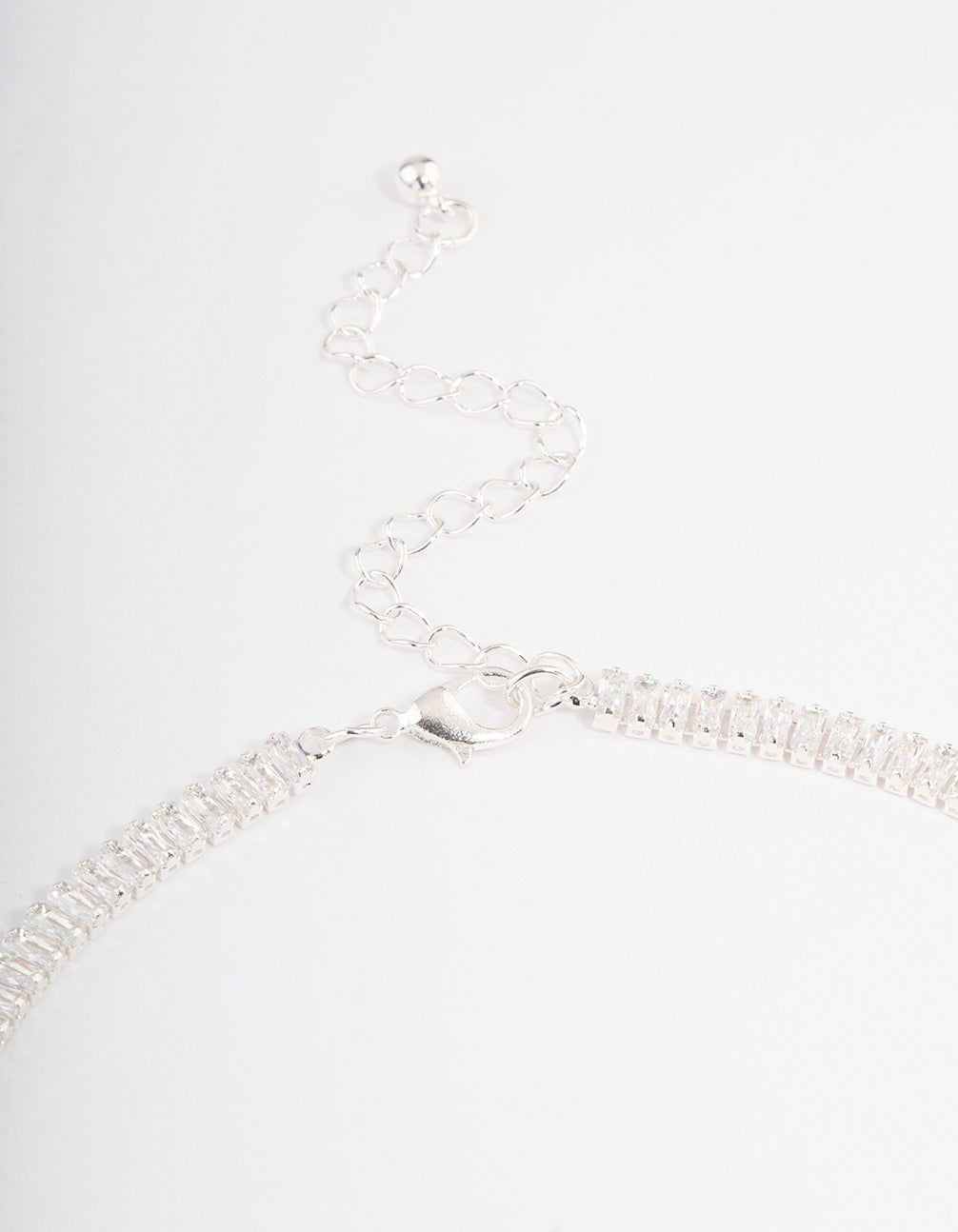 Silver Plated Cubic Zirconia Baguette Cup Chain Necklace
